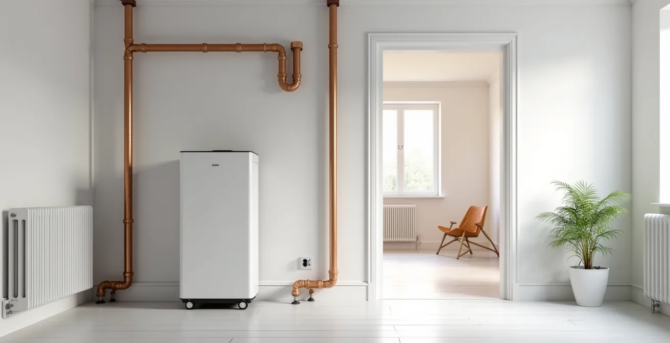 Opter pour une PAC Air-Air signifie abandonner complètement votre circuit de chauffage central. Vos radiateurs deviendront inutiles. L’installation nécessite de poser des unités intérieures (splits) dans chaque pièce à chauffer et de les relier à l’unité extérieure par des liaisons frigorifiques. Cela implique des travaux plus invasifs (percements des murs, passage de gaines) et un impact esthétique à prendre en compte. De plus, la chaleur diffusée par convection d’air est souvent perçue comme moins confortable et plus sèche que la chaleur rayonnante des radiateurs.