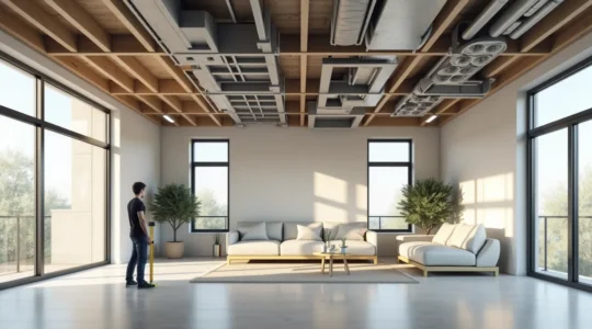 L’installation d’un système gainable implique la création d’un plénum, cet espace technique dissimulé entre le plafond existant et le faux-plafond. Cette zone accueille l’unité intérieure, les gaines de soufflage et parfois d’autres réseaux comme l’éclairage ou le câblage électrique.